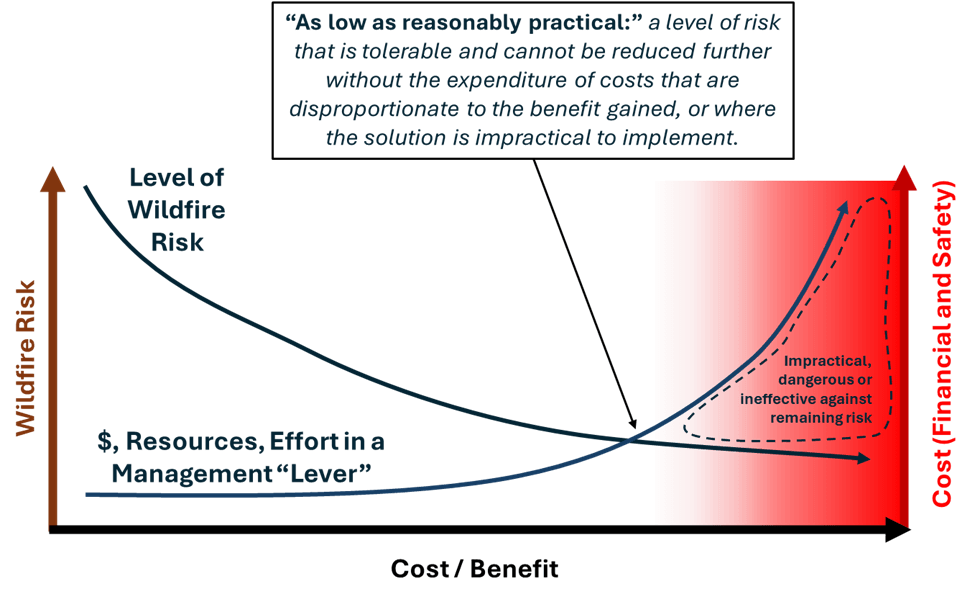 By finding and recognizing the limit of the aerial suppression lever, we can look at using aircraft to keep fire risk “as low as reasonably practical” without incurring disproportionate costs. Importantly, this cost is more than financial; it includes real safety risk to our people and trade-offs with other management levers.